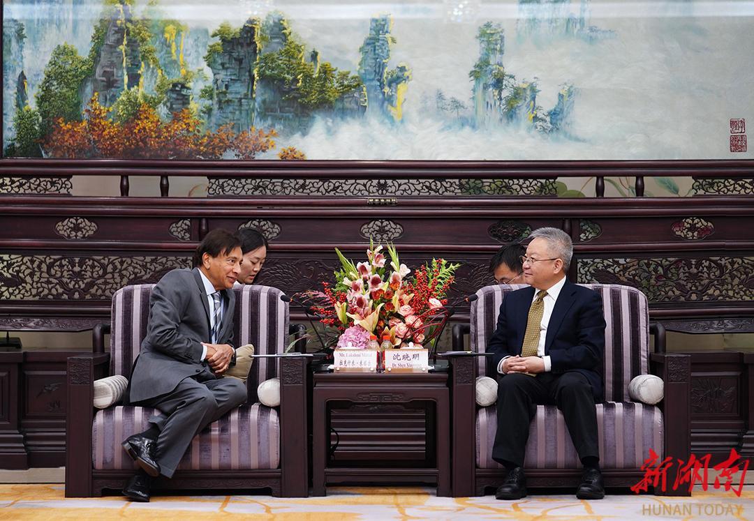 沈晓明代表省委、省政府对拉克什米·米塔尔一行表示欢迎。他说,安赛乐米塔尔集团和米塔尔先生是湖南的老朋友,双方密切合作20年,取得了丰硕成果,结下了深厚友谊,双方共同投资兴建的华菱安赛乐米塔尔汽车板有限公司已成为中国领先的汽车板供应商和钢铁行业中外合资企业的成功典范。当前,湖南正在深入学习贯彻习近平总书记在湖南考察时的重要讲话和指示精神,持续用力打造“三个高地”,加快推动高质量发展,这为湖南和安赛乐米塔尔集团深化合作、加快发展提供了新的重大机遇,希望双方进一步拓展合作领域、加大合作力度,不断开创共赢发展新局面。