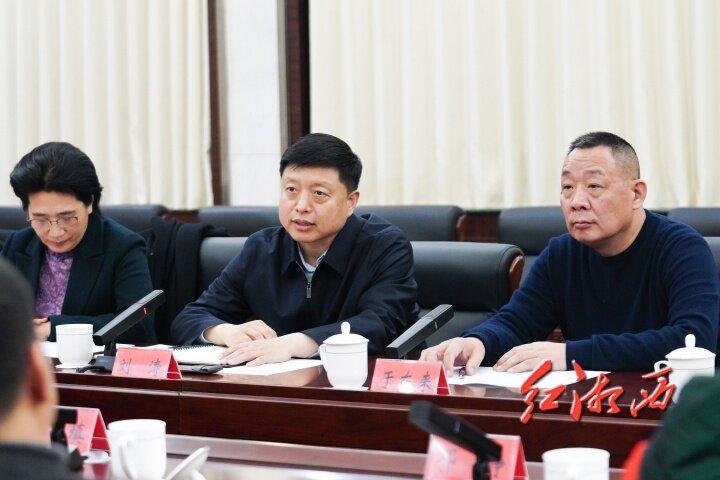 座谈会上,刘涛代表州委、州政府对于东来一行到湘西州考察表示欢迎。他说,湘西州拥有丰富的自然资源、深厚的文化底蕴和良好的产业基础,但在发展过程中也面临着一些困难和问题,于东来先生的到来为湘西产业提质升级和企业经营发展带来新理念、新思路,是一次难得的学习机会。期望胖东来商贸集团有限公司利用自身优势,在产品开发、工艺标准、市场开拓、商业运营等方面与湘西州加强合作,实现互利共赢。他叮嘱有关部门和企业负责人要主动对接、虚心学习、做好服务,推动合作项目尽快见效。