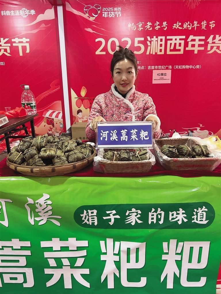 陈慧娟在2025湘西年货节上卖蒿菜粑粑。 林云 摄