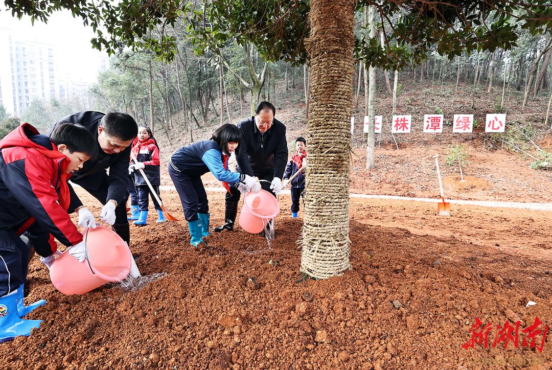2月27日,在位于长株潭生态绿心的植树点,沈晓明与干部群众、少先队员一同参加集中义务植树活动。