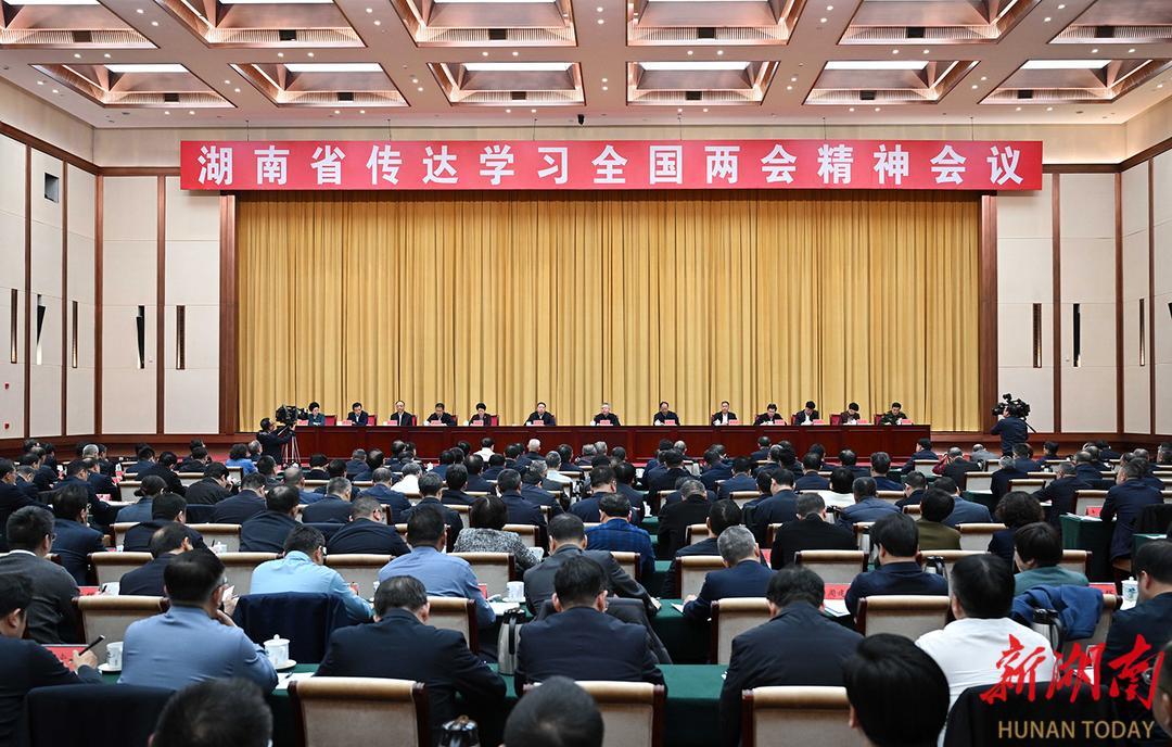 毛伟明在主持时说,要深刻领会抓落实。把学习全国两会精神与贯彻习近平总书记关于湖南工作的重要讲话和指示批示精神结合起来,做到思想上合心、工作上合力、行动上合拍,推动各项事业全面发展、全面进步。要对标要求抓落实。围绕经济大省挑大梁、教育科技人才一体发展等,发挥湖南优势,加快培育发展新质生产力,在全国发展大局中彰显更大担当。要结合当前抓落实。强化机遇意识、服务意识、攻坚意识,加快对接落实重大政策、重大项目、重大资金、重大改革,以一季度良好开局确保全年经济持续向好。