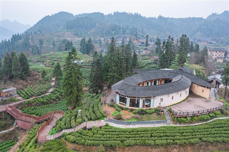 国茶村的民宿“茶庐”形似一片茶叶,与环境融为一体。