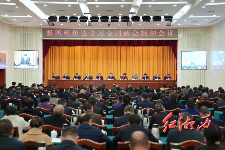 刘涛指出,刚刚闭幕的全国两会,是在“十四五”即将收官、“十五五”谋篇布局关键之年召开的重要会议,是凝心聚力、真抓实干、团结奋进的大会。习近平总书记在大会期间发表的一系列重要讲话,凝练了对以中国式现代化全面推进强国建设、民族复兴伟业的深邃思考。会议审议通过了一系列重要文件,成果丰硕,意义重大。全州各级各部门要提高政治站位,增强学习贯彻全国两会精神的主动,坚持把学习贯彻全国两会精神作为当前重要政治任务,与学习贯彻党的二十大和二十届二中、三中全会精神贯通起来,与贯彻落实习近平总书记关于湖南、关于湘西工作的重要讲话重要指示批示精神结合起来,一体落实省委工作要求,跟踪落实政策,加强工作调度,营造浓厚氛围,在“实”字上下苦功、在“干”字上求成效。