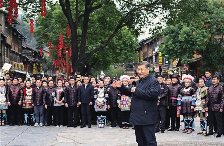 习近平强调,贵州历史底蕴深厚,红色文化丰富,民族文化多姿多彩,要利用这一优势,增强文化自信、化风育人,助推经济社会发展。对民族特色村寨、传统村落和历史文化名村名镇,对革命战争时期留下的红色旧址,要加强系统性保护。要坚持移风易俗,积极培育文明新风。要深化文旅体融合,丰富旅游业态,打造“多彩贵州”文旅新品牌。