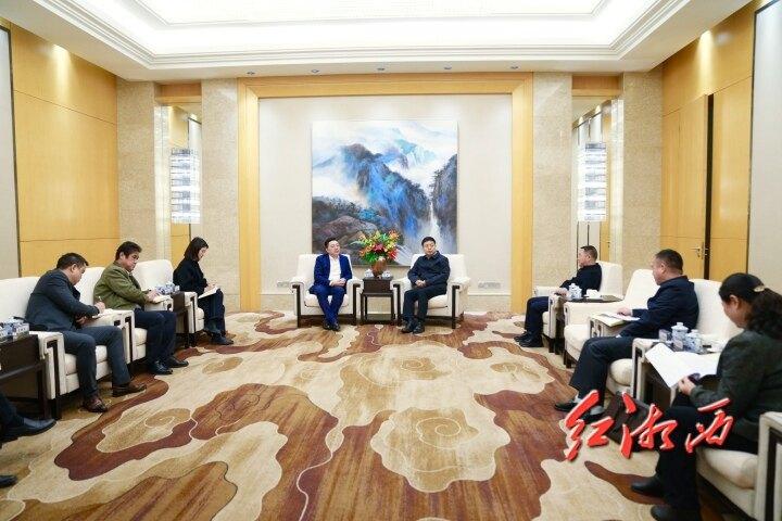 刘涛代表州委、州政府对赵金蛟一行的到来表示欢迎。他说,湘西州的地理条件和自然资源得天独厚,是杜仲、虎杖、百合等众多中药材的主产区,药材资源丰富、医药文化悠久。中医药和生物医药产业是湘西州“1+5+X”现代化产业体系的重点产业。希望中国农垦集团中药公司充分发挥国企的技术、管理、平台等优势,与湘西州建立长期战略合作机制,推动更多更好项目在湘西落地,实现深入合作、共赢发展。湘西州将紧紧抓住与中国农垦集团中药公司的合作机遇,坚持把中医药和生物医药产业作为战略性支柱产业强力推进,加快完善产业链群,不断壮大民族中医药事业。