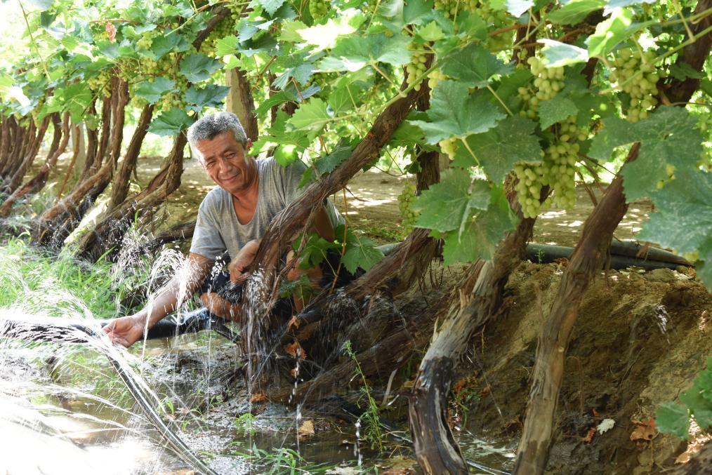 “以前种葡萄20天浇一次水,一年浇十一二次用水900方;现在10天浇一次,一年浇十八次用水700方,9亩地一年能省500块水费哩!”春暖花开,新疆吐鲁番鄯善县果农阿不力孜·阿不都热衣木先花几天时间把埋了一冬天的藤蔓上架,准备再用几天把用于灌溉的微喷带铺设到位。