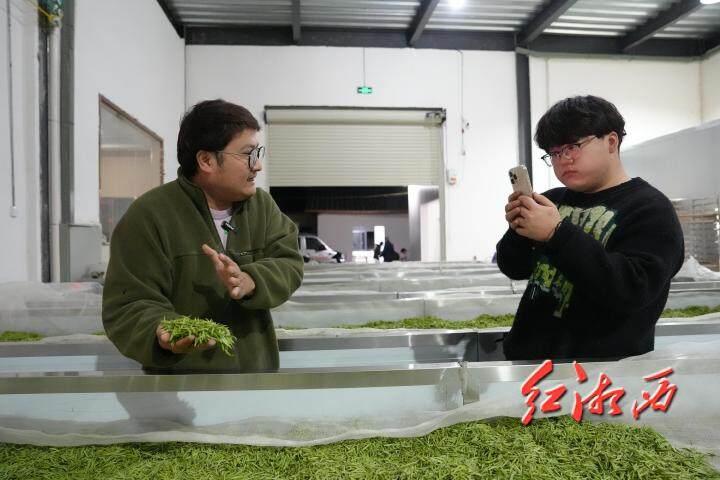 春茶采摘季,不仅吕洞山片区的村头村尾转型为茶叶交易“小市场”,就连加工作坊也都成为活脱脱的“展销中心”。