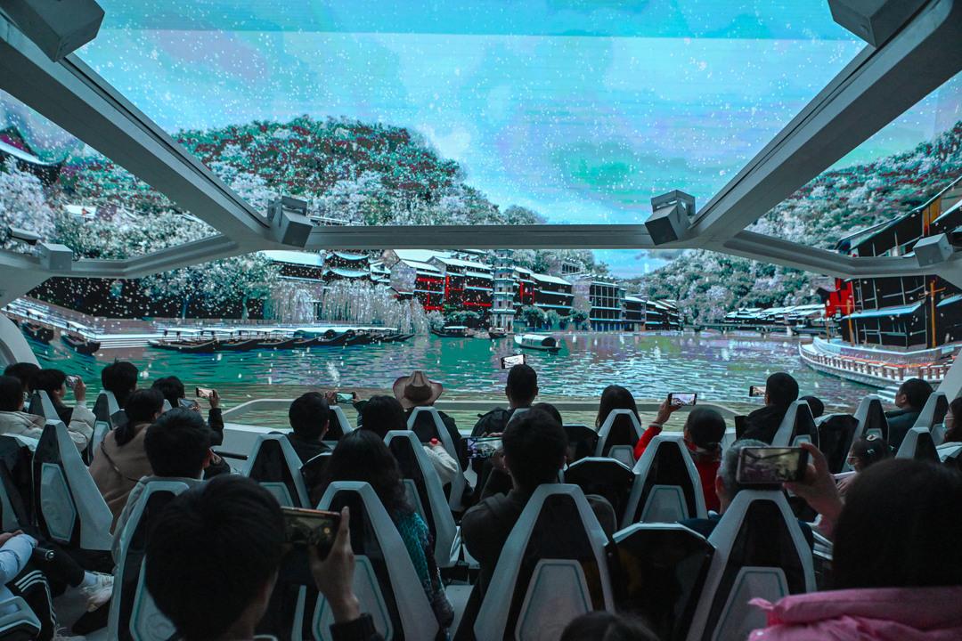 游客在凤凰磁浮“凤凰等待站”沉浸式体验《凤凰等待》。 郭立亮 摄