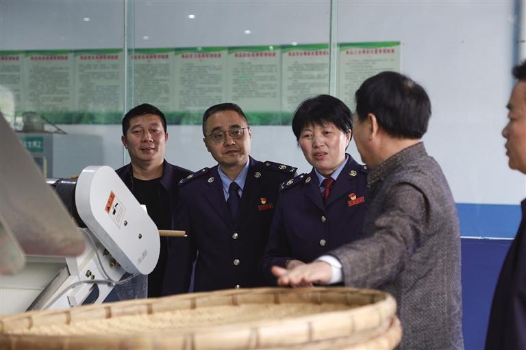 陈延军(左二)到茶企宣传税费政策,了解企业经营情况。