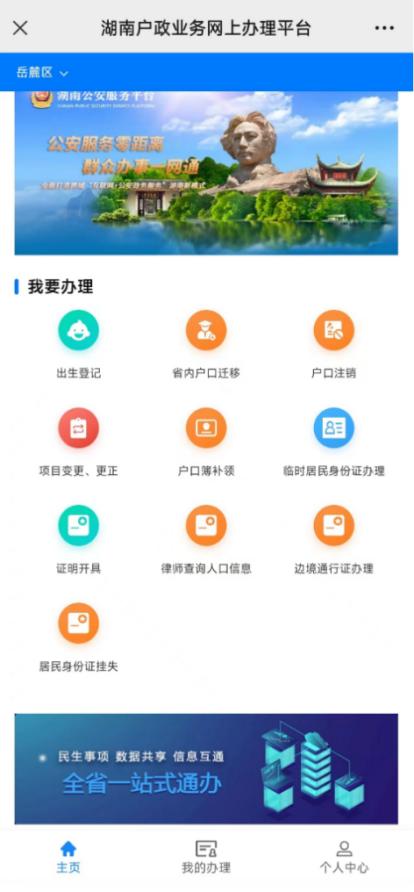 1.湖南户籍居民微信关注“湖南公安服务平台”公众号,注册并实人认证登录,点击“微警务”,进入平台首页,在热点应用栏中选择“户口业务全程网办”,或登录省政府“湘易办”APP首页,点击“户口业务全程网办”,点击进入湖南户政业务网上办理平台,在“我要办理”菜单中选择要申办的业务类型,阅读网办须知,填写相关信息,拍照上传证明材料,提交办件申请。