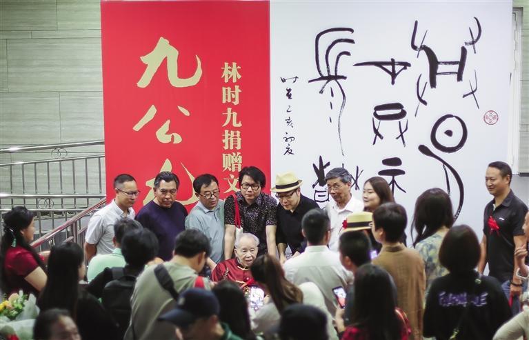 2023年6月,“九公九十——林时九先生捐赠文物及作品展”开幕式,观众将林老围住,祝贺展览圆满成功 。
