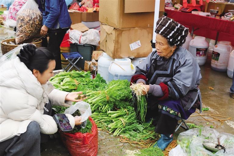 又到一年食“春”季,当身穿苗服的阿婆们背着野菜赶往市集,将粘着泥土的鸭脚板、折耳根与带着雨水的野胡葱、荠菜等野菜一一码放整齐,藏在湘西集市里的“春天味道”早已弥散开来。