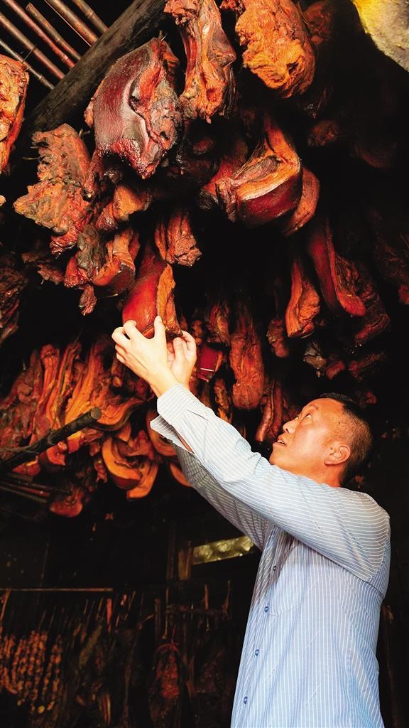 腊肉熏炕之后,再埋进满桶干茶中,谓之“窝腊肉”。