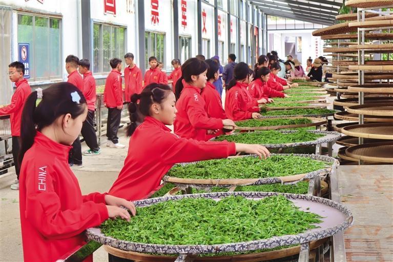 为传承手工采茶、炒茶技艺,英妹子茶业专门开辟了研学游项目,吸引了州内外研学团体前来体验。(本图由湘西州慈爱园提供)
