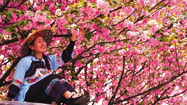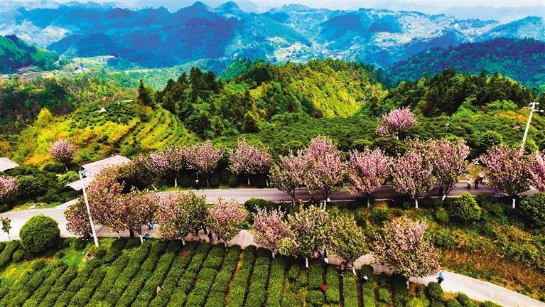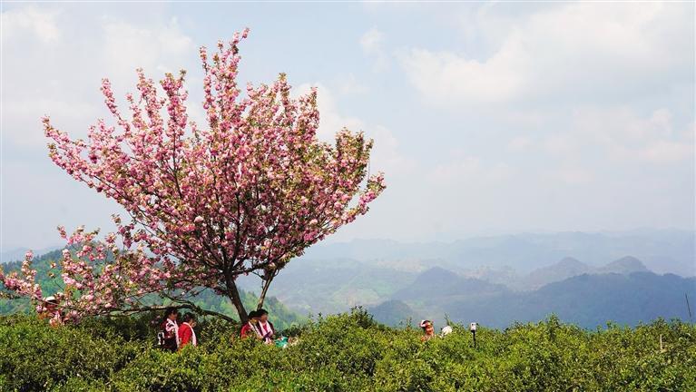一望无际的绿色固然令人心旷神怡,而有了樱花点缀后的茶园,更是绚烂多姿。牛角山的采茶工多为周边村庄的女性村民,当地是苗族聚居,妇女们采茶时,伴随着手指翻飞,往往会开怀高歌。随着苗歌“哎……咦哎”的高腔,樱花树在风中摇摆,好似伴舞。这如诗画般的场景,吸引了大量州内外游客。每年春季樱花开时,牛角山上赏花踏青的人群络绎不绝。