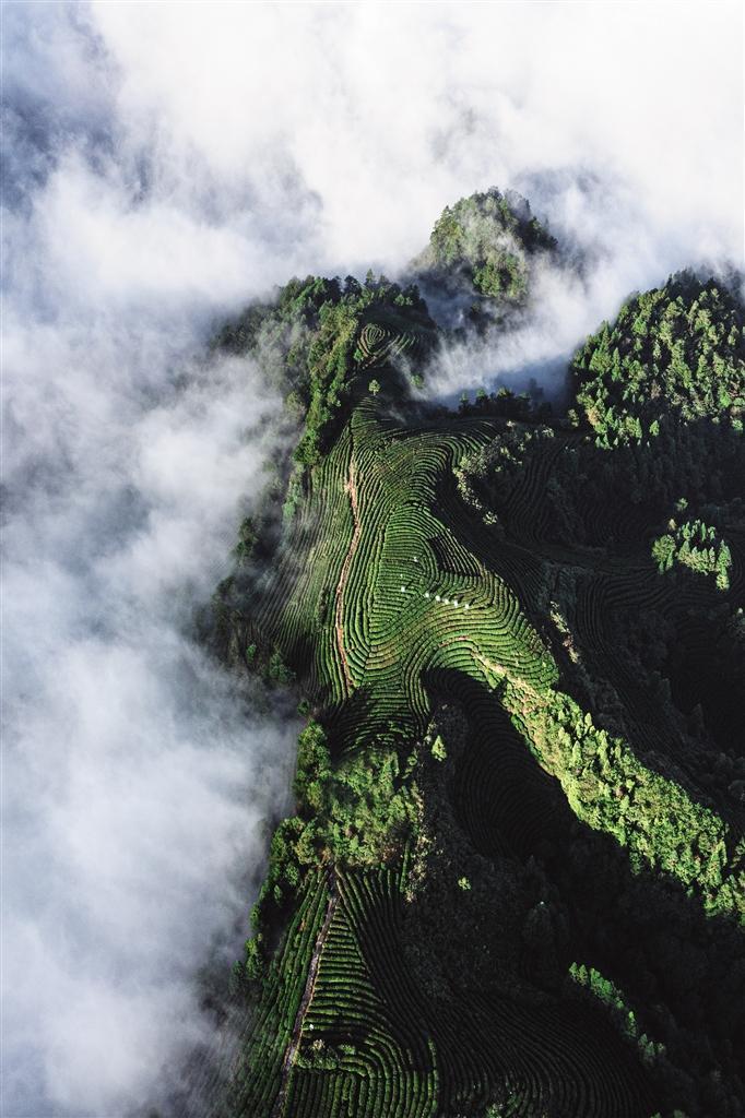 云雾缭绕的牛角山茶园,似大地谱写的诗行。 团结报全媒体记者 张谨 摄