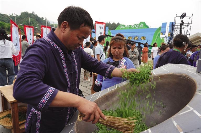 手艺人现场炒茶,茶香四溢。 团结报全媒体记者 张谨 摄