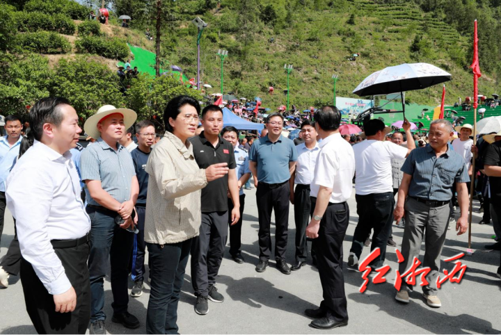 5月1日,陈华到保靖县吕洞山镇夯吉村“茶BA”现场调研活动交通组织、安全防范等工作。周兴云摄