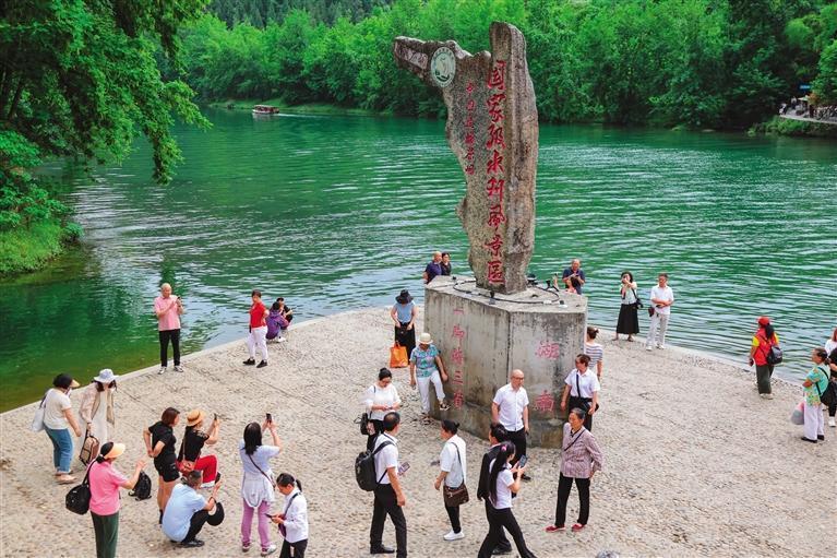 “一脚踏三省”的石碑成为游客必打卡的地标。 团结报全媒体记者 胡承鼎 摄