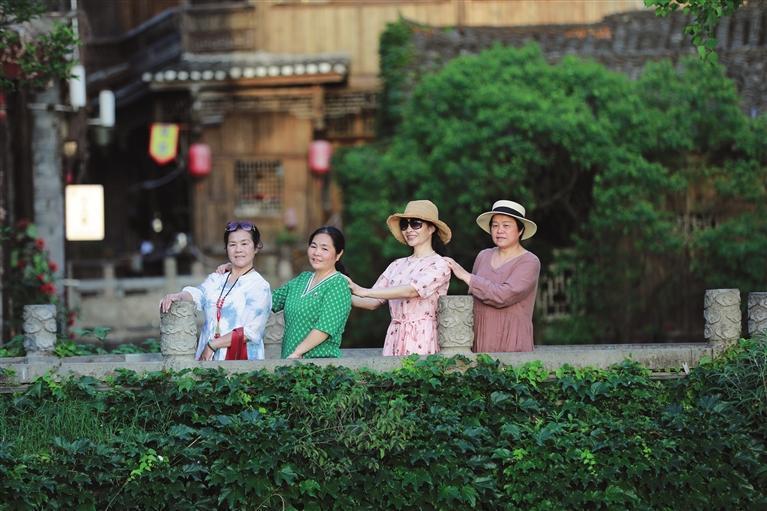 游客合影,定格在边城的美好瞬间。 团结报全媒体记者 田华 摄