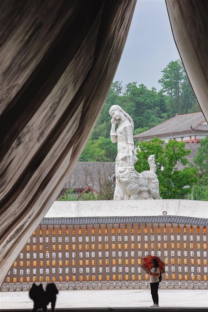 晚霞中,白塔下的翠翠领着大黄,望着边城人家的灯火。 团结报全媒体记者 胡承鼎 摄