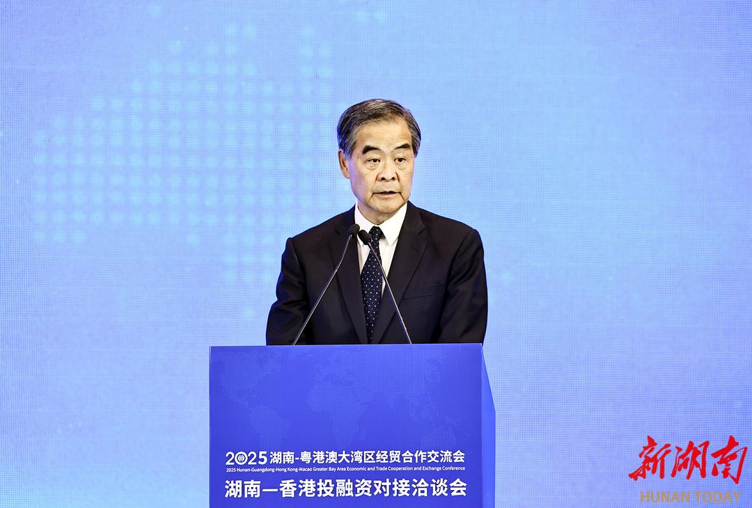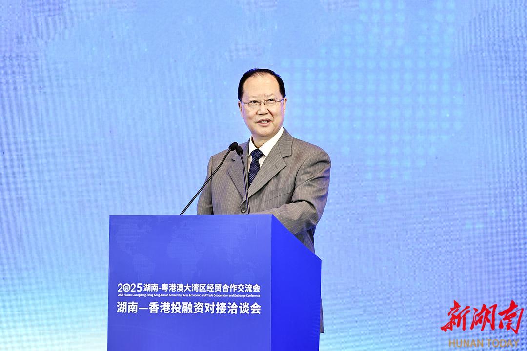 “纵山河远阔,难隔一脉同源;虽千里迢迢,不改携手初心。”毛伟明在致辞中说,长期以来,作为湖南境外第一大贸易伙伴、境外融资第一选择地、入境游第一大客源地,香港在湘投资达241亿美元、占湖南利用外资的67%,两地进出口额连续6年超500亿元,供港农产品70%左右来自湖南,仅去年就有43万香港游客来湘打卡。湖南与香港有着广阔的合作空间,希望双方以更紧密的协作推动科产融合,以更高效的联通促进资本融合,以更开阔的视野加强贸易融合,以更便利的举措深化文旅融合,以更多的新途径新方式,绘就合作共赢新图景。