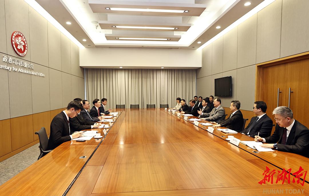 华声在线香港5月14日电(全媒体记者 孙敏坚)12日至14日,湖南代表团在香港举行一系列经贸招商交流活动,深入贯彻习近平总书记关于湖南工作的重要讲话和指示批示精神,深度融入粤港澳大湾区。全国政协副主席梁振英出席湖南-香港投融资对接洽谈会,省委副书记、省长毛伟明率团参加,并与香港特区政府署理行政长官陈国基、中央人民政府驻香港特别行政区联络办公室主任郑雁雄座谈。