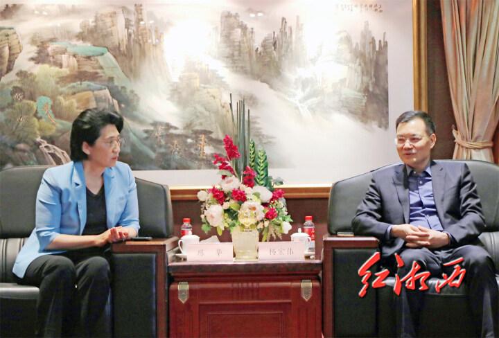 陈华与三湘集团有限公司董事长杨宏伟交流。