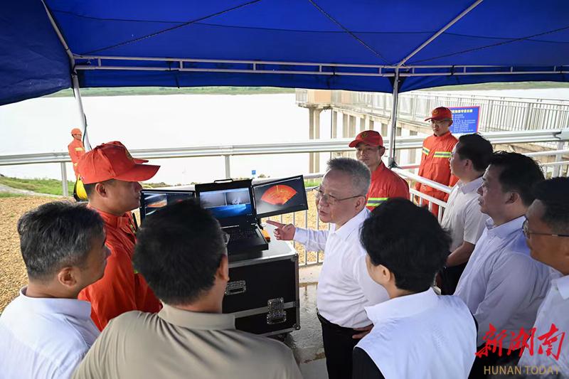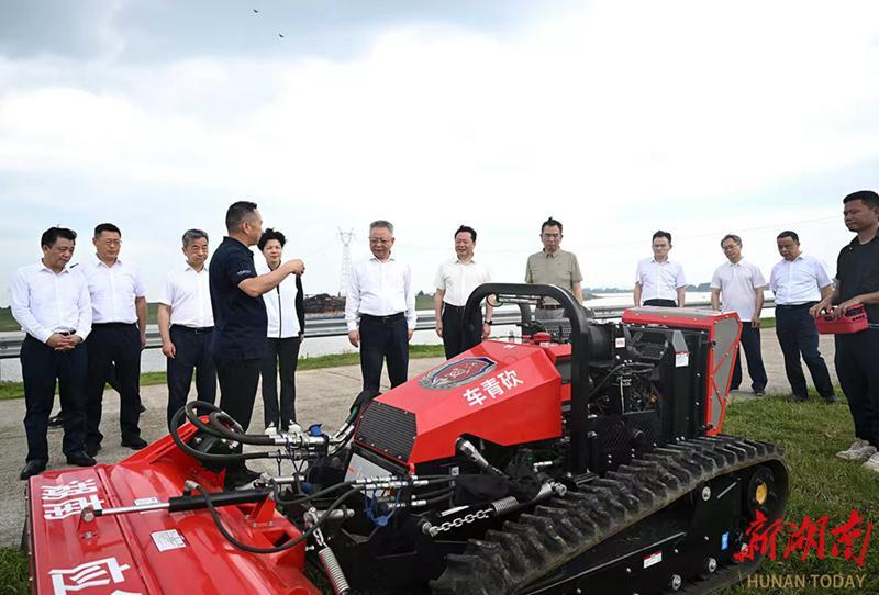来到资江一线防洪大堤沙头镇陈婆洲段和余家咀段,沈晓明现场察看分布式光纤传感监测器、红外巡查无人机、堤防险情隐患探测车、砍青车等堤防隐患排查装备以及砂石自动装袋模块车、水下机器人、照明无人机等堤防险情处置装备,了解其推广应用情况。他指出,要立足于“早发现”,加大科技创新力度,充分调动产学研各方积极性,提高相关设备产业化水平,建立多模态、多场景的人防物防技防相结合的监测系统,提升监测预警和险情应对处置能力。