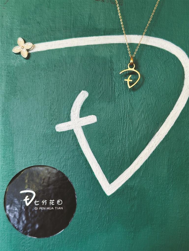 日落时分,丁兰坐在小木屋里,以微笑目送游客离开。夕阳洒满庄园,她低头温柔地抚摸脖颈上的项链,这是她精心设计的“七分花田”商标。一个简约的爱心型吊坠,右边刻意留了三分之一的缺口,中间的英文字母“f”巧妙地形成了“田”字中间的笔画“十”,同时“f”正好是鲜花的英文单词“flower”的首字母。她还特意在爱心的顶端镶嵌了一颗小的几乎看不见的钻石。