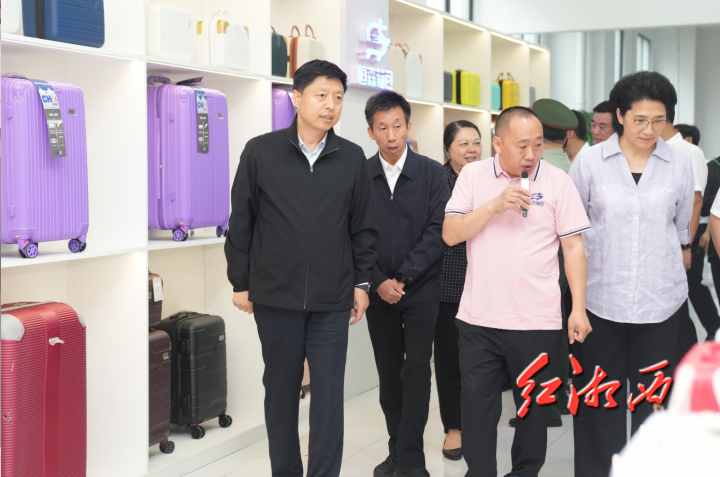 5月27日,与会人员观摩湖南恒森箱包有限公司。 团结报全媒体记者 刘炜 摄