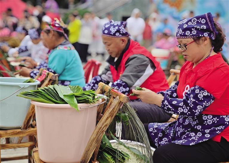 包粽子比赛现场。 滕建康 摄