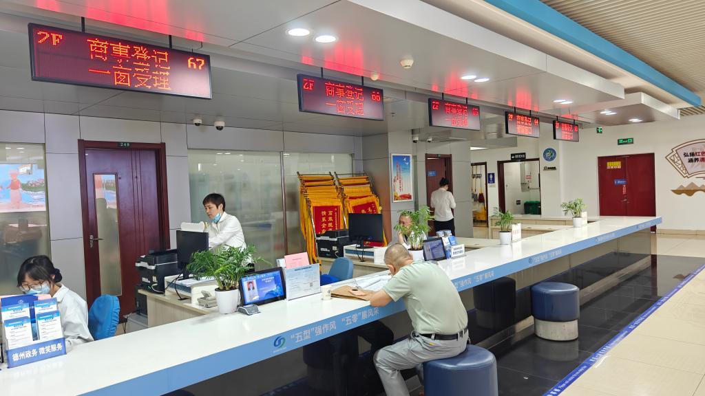 在德州市政务服务中心,工作人员正在受理企业登记信息备案变更业务。新华社记者萧海川 摄