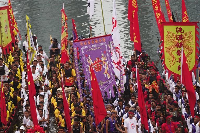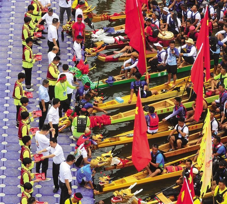 “宁输一丘田,不输一篙船!”来自洗溪镇苗家龙舟队的一名小伙子专程从广州赶回家乡参赛。他坦言:“龙舟赛比过年还重要,全村人都回来了!这就是刻在骨子里的团结精神。”