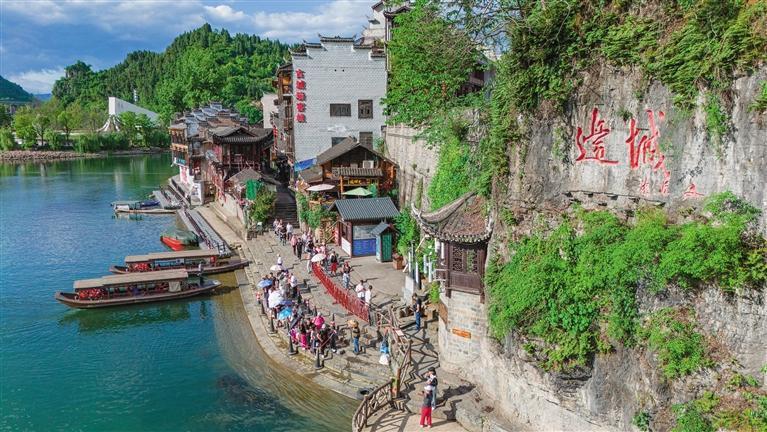 立于湘黔渝交汇点,“一脚踏三省”的奇妙体验在此展开。奔涌的清水江自贵州而来,经重庆洪安,在茶峒蜿蜒汇入花垣河。这不只是地理的节点,更是《边城》故事展开的辽阔舞台。翻开书中描绘边地风物的篇章,清水江的波光仿佛正映照着字里行间。
