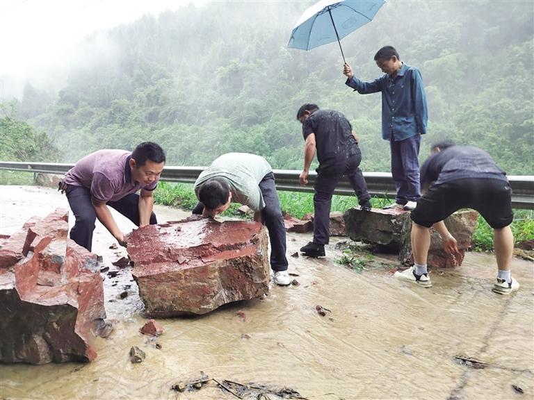 6月19日,永顺县泽家镇组织党员群众投身防汛一线,清理道路塌方。 团结报特约全媒体记者 包伦金 通讯员 刘洋 摄