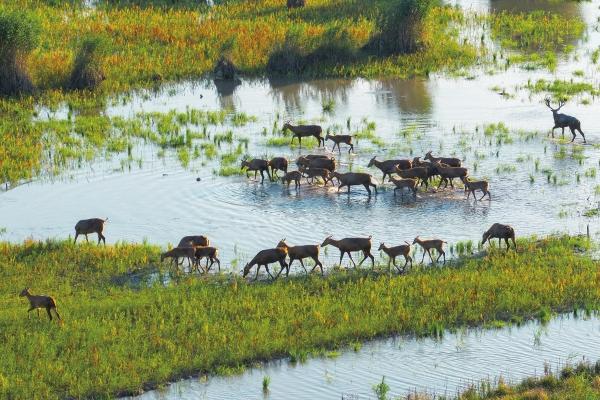 湖南凭借洞庭湖独特的自然连通性,探索“自然修复+人工辅助”模式,打破麋鹿地理隔离。