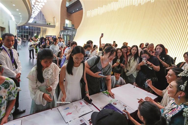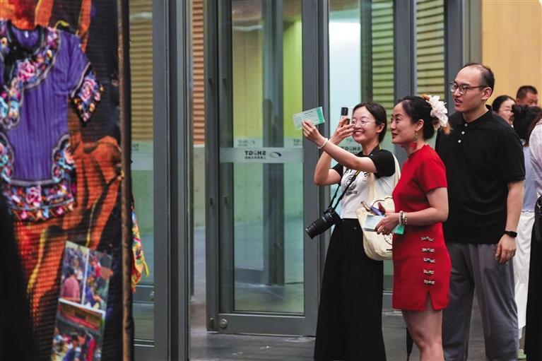 6月14日,民族舞剧《二十四时舞》全国巡演走进上海,在上海保利大剧院精彩亮相。不仅舞剧受到观众喜爱与热捧,一同赴沪展出的苗族银饰、苗绣等非遗艺术品也收获观众认可,在上海掀起一股苗族非遗热潮。
