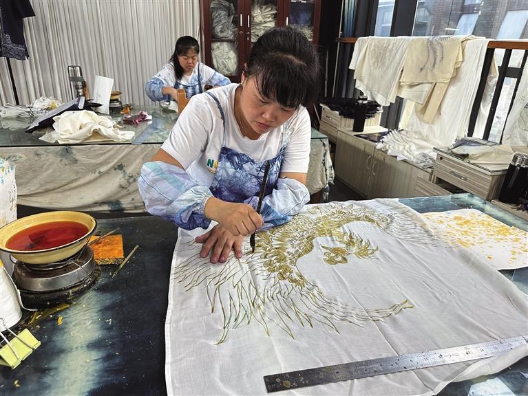 她在凤凰承包了100亩土地,从染料种植到生产加工及销售都放在当地,让非遗产业链成为村民增收的新门路。“蜡的世界”九成以上的员工都是当地的留守妇女,她们只要有学习意愿,可以参加免费培训,通过考核就能上岗。