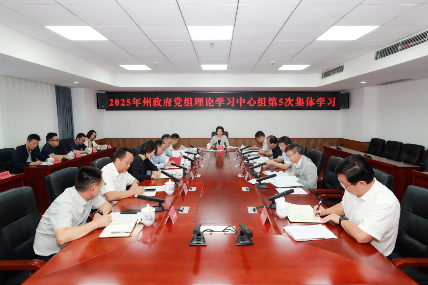 湘西网6月25日讯(全媒体记者 陈海泉)6月24日,湘西州委副书记、州长,州政府党组书记陈华主持召开2025年州政府党组理论学习中心组第5次集体学习,深入学习领会习近平总书记关于党的建设的重要思想、关于党的自我革命的重要思想、关于树立和践行正确政绩观以及关于加强党的作风建设的重要论述,《习近平关于加强党的作风建设论述摘编》,紧扣贯彻落实中央八项规定及其实施细则精神开展学习研讨,进一步推动学习教育走深走实,推动全面从严治党向纵深发展、向基层延伸。陈华强调,要以学促进、以学促干、以学促廉,深刻认识中央八项规定是管长远的铁规矩、硬杠杠,进一步增强政治自觉、思想自觉、行动自觉,找到切入口,找准发力点,清清白白为官、干干净净做事、老老实实做人,共同营造风清气正的政治生态。