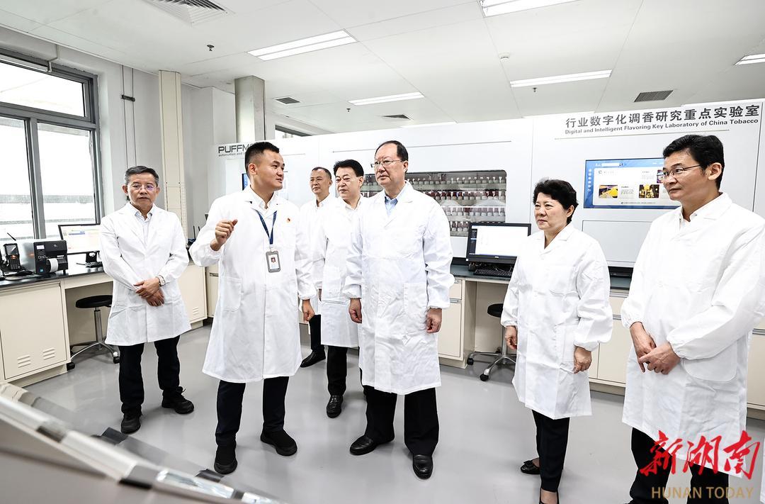 湖南中烟是我省重点工业企业,位列全国卷烟工业企业前三强,近四年实现工业总产值、省内工业产值、工业增加值、税利总额“四个过千亿元”。来到公司下辖的长沙卷烟厂以及湖南中烟技术中心,毛伟明一行实地参观生产线,详细了解产品销售、技术革新、易地技改项目建设等情况,并实地考察了长沙卷烟厂新址。他说,烟草是我省的重要支柱产业,也是乡村振兴的惠农富农产业。要加快“智改数转”步伐,推动设备更新、工艺升级,打造具有世界先进水平的智能工厂、绿色工厂、灯塔工厂,带动传统产业加速迈向中高端;要做优质量、做强特色、做响品牌、做深价值,持续提升市场影响力和竞争力。