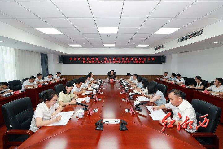 6月30日,湘西州委副书记、州长陈华给州政府办机关第一党支部、州政府研究室党支部讲专题党课。图为讲课现场。周兴云 摄