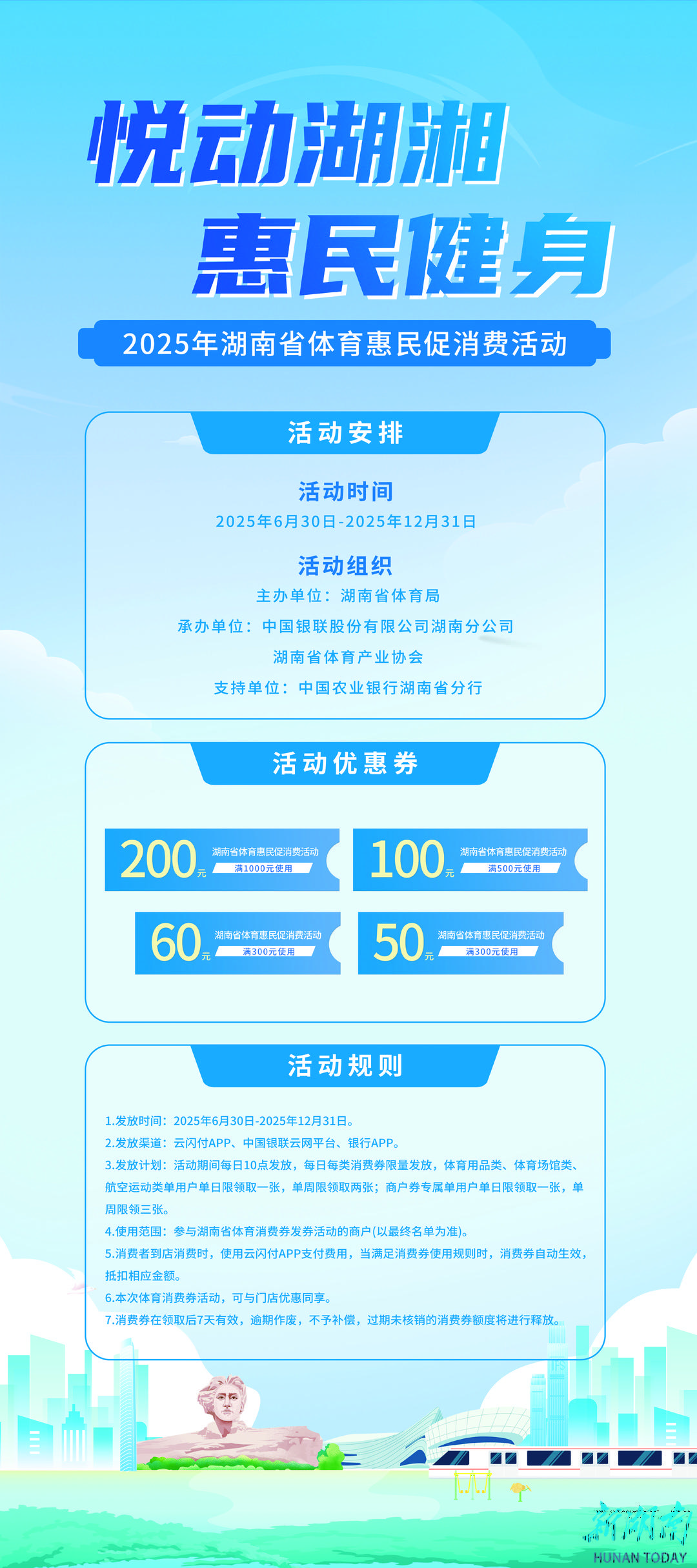 4.使用范围: 参与湖南省体育消费券发券活动的商户(目前火热招募中,以最终名单为准)。