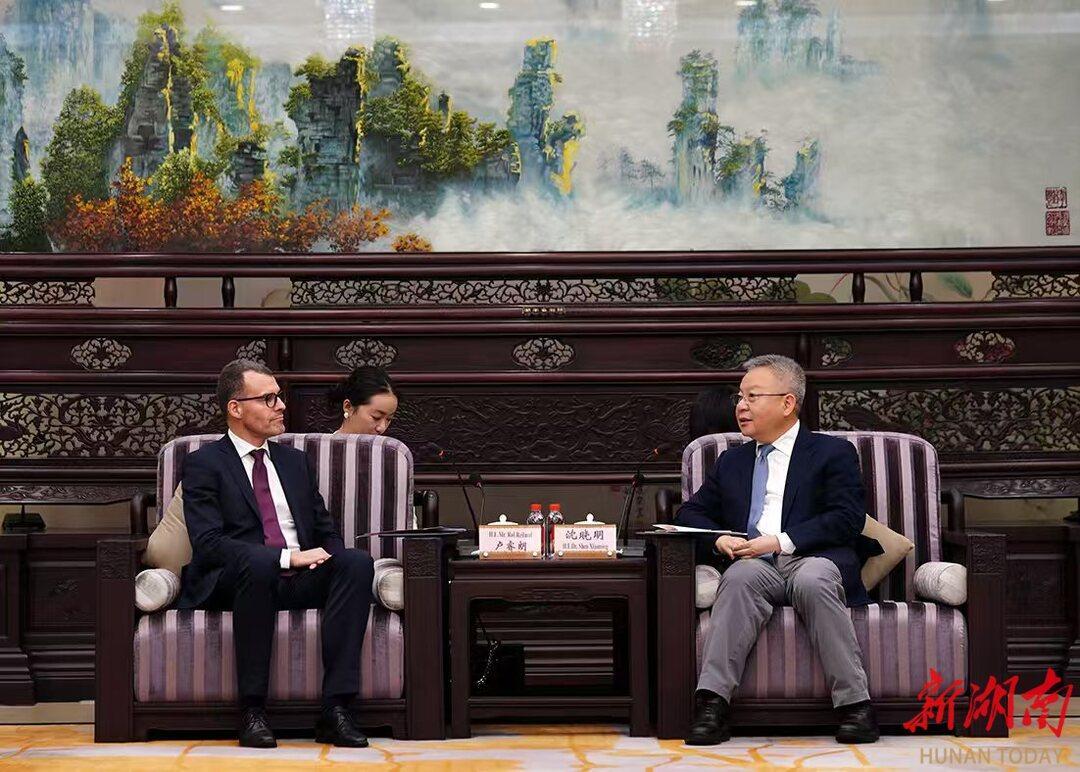 沈晓明代表省委、省政府对卢睿朗一行表示欢迎。他说,湖南与卢森堡友好往来密切,产业合作成果丰硕,希望双方进一步加强在先进制造业、科技创新、绿色低碳等领域的务实合作,更好实现互利共赢。