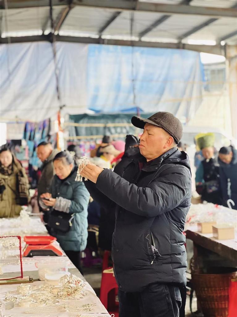 这里更是一片银子的世界,用琳琅满目形容已远远不够用了,小的银坠、银耳钉、银耳环、银耳吊、银戒指……大的银手链、银项圈、银杯、银碗、银锭……满长廊的银子们光泽闪烁不定,如同星子在夜空中跳跃,又似精灵在空气中嬉戏。每一处银白的光影,都像是隐藏着一份不为人知的秘密。