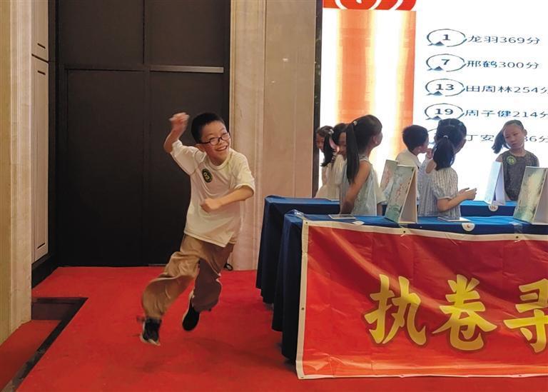鼓点骤响,墨意纵横。决赛“诗王争霸”沿用“过关斩将”的淘汰机制,将赛场气氛推向高潮。二十余名小记者一路“过关斩将”攀上文峰之巅展开对决,小选手们或双指并剑,或冷笑拂袖,或凝神闭目,或踏歌而去……每一个眼神的交汇,每一次指尖的触碰,都充满了火药味。