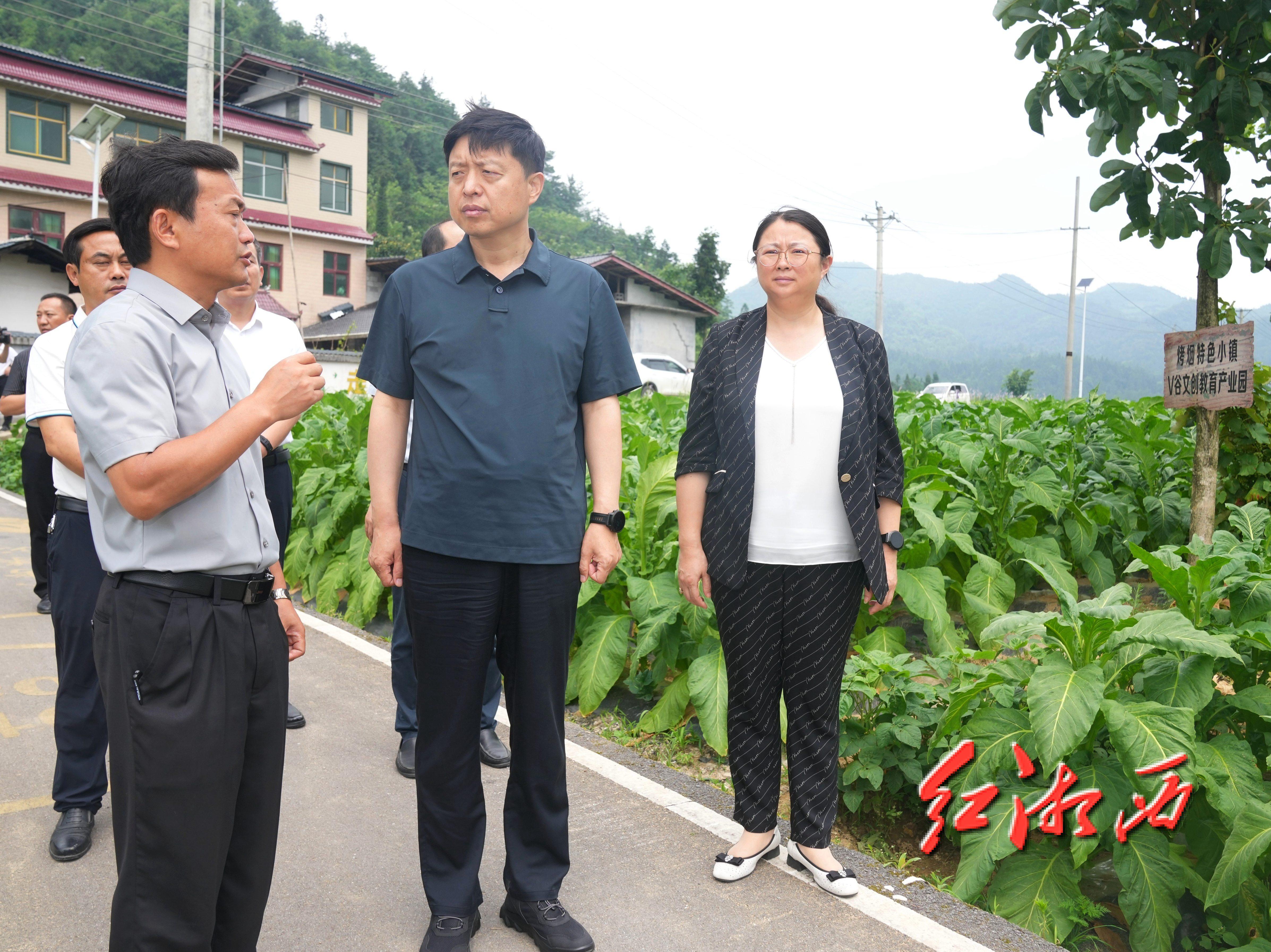 刘涛在大安乡木鱼坪村,察看烤烟产业示范基地、听取乡村振兴工作及烤烟产业发展等情况介绍。团结报全媒体记者 刘炜 摄