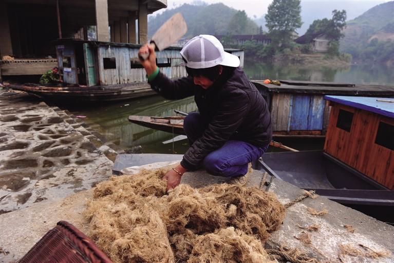 古丈罗依溪码头修船人。 团结报全媒体记者 张谨 摄