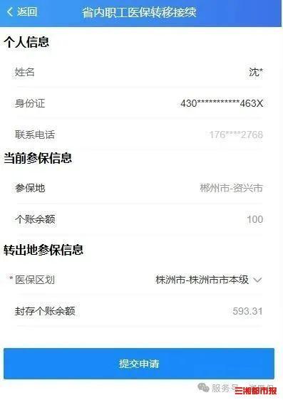 华声在线7月15日讯(全媒体记者 高煜棋 通讯员 乔木 高杰 熊定波)近日,因工作变动在长沙新参保的李先生惊讶地发现,单位刚帮他完成参保登记,原株洲个人账户上500多元就立刻到账了。同日,已在郴州参保的刘女士通过“湘医保”提交省内转移接续申请后,其省本级个人账户1500余元竟然瞬间到账。