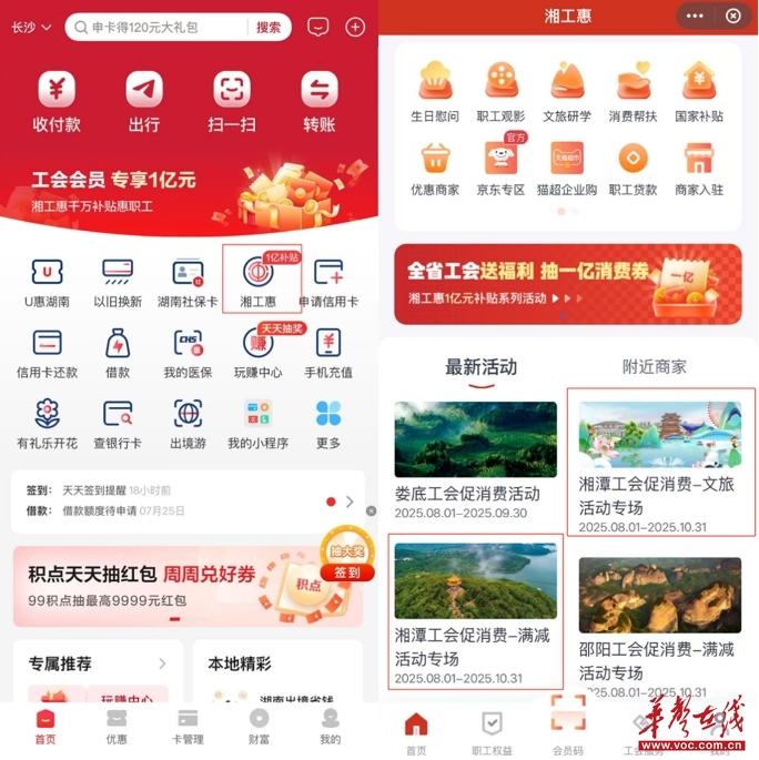 目前,在“云闪付”APP-“湘工惠”小程序活动页面已上线报名入口,职工可随时查询报名进展、活动规则及文旅券权益明细。